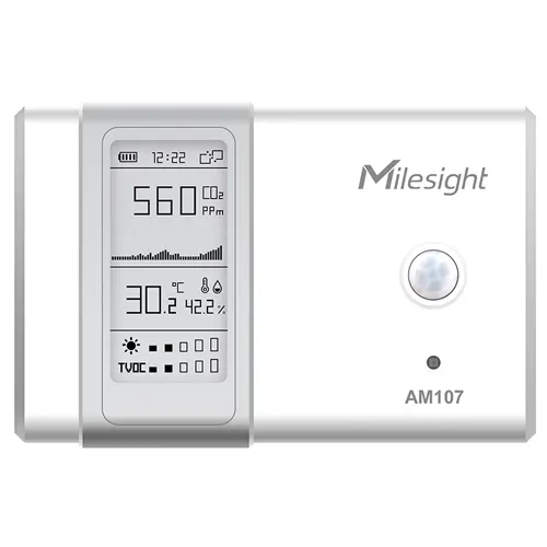 El Milesight AM107-868M es un sensor LoRaWAN® todo en uno para interiores, diseñado para monitorizar de forma precisa la calidad del aire y el confort ambiental en oficinas, aulas, hospitales y espacios comerciales.