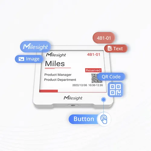 El Milesight DS3604-868M es un display IoT con pantalla E-Ink de 4,2” y comunicación LoRaWAN®, diseñado para mostrar información de forma clara y permanente con un consumo mínimo. Gracias a la tecnología de tinta electrónica, mantiene el contenido visible incluso sin energía continua, siendo ideal para señalización inteligente y escenarios de digitalización de espacio