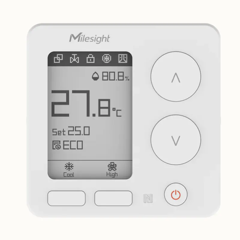 El Milesight WT304 es un termostato inteligente LoRaWAN® especialmente diseñado para el control de Fan-Coils 2-pipe y 4-pipe, ofreciendo un equilibrio perfecto entre confort, eficiencia energética y control remoto. Incorpora pantalla E-Ink de 2,7”, conectividad LoRaWAN de baja latencia (Clase C) y comunicación local Milesight D2D.
